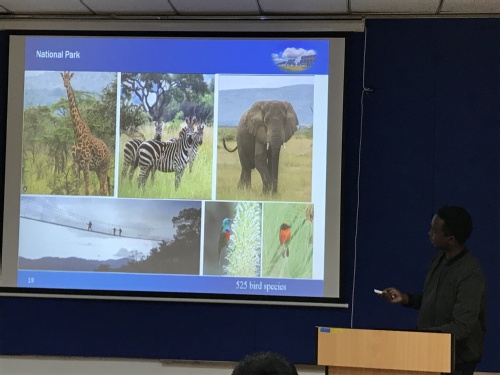 活动简介:朱玉川老师和李成刚老师组织了本次海外学习生活经历分享会。朱玉川老师首先于会上介绍了自己在美国马里兰大学的访学经历,期间朱老师体验了美国大学本科生的课程、参加了由英国巴斯大学主办的位于芝加哥国际会议;对于在美国的生活,朱老师主要介绍了美国家庭过感恩节的传统习俗,并分享了自己在华盛顿、纽约等地的所见所闻。随后高强博士分享了其在芬兰坦佩雷理工大学的访学经历。高强博士主要讲述了芬兰的国粹“桑拿”文化以及芬兰人沉默内敛的性格对其在芬兰生活的影响,并对自己在坦佩雷大学的学习与科研进行了介绍。最后分别由来自卢旺达的Bruno和来自毛里求斯的Hemant两位外国留学生分享了他们家乡的风俗、环境以及教育情况。